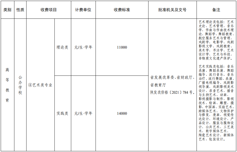 西安音乐学院、西安美术学院的艺术理论类15000元/生·学年,实践类18000元/生·学年。